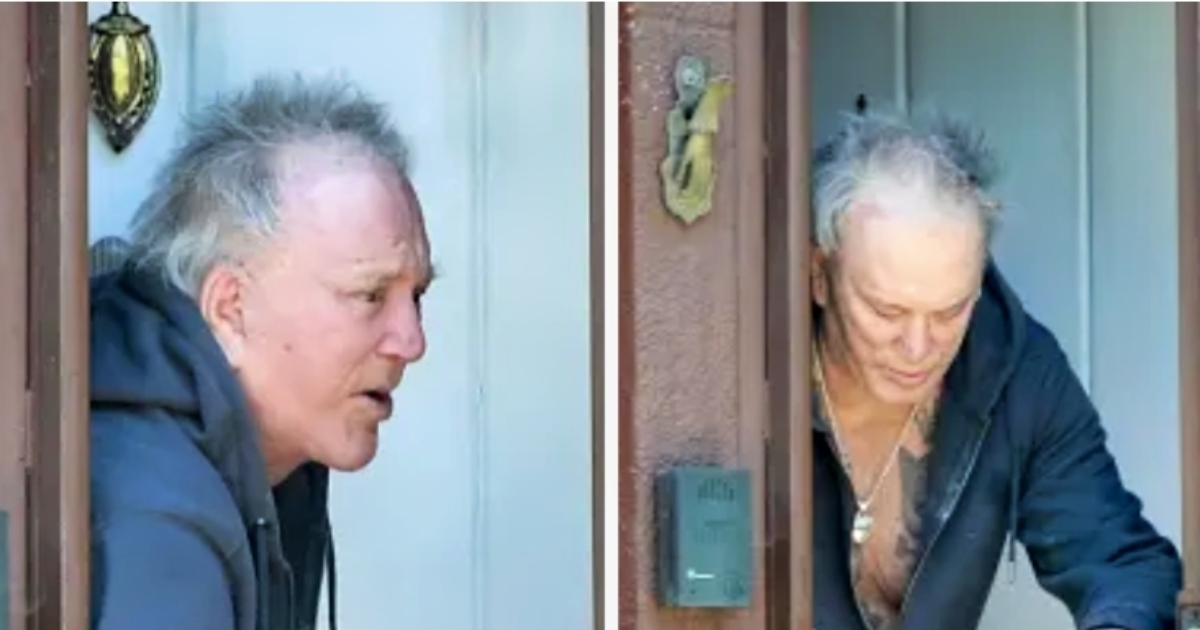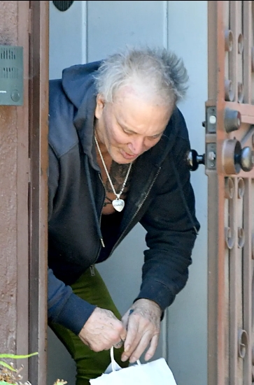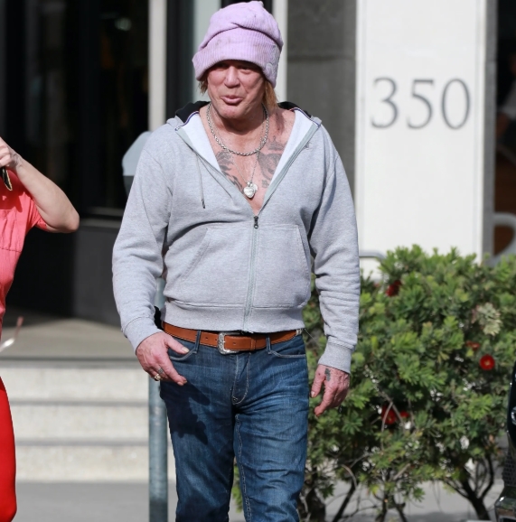 W rzadkim publicznym wystąpieniu, 72-letni aktor Mickey Rourke został sfotografowany przed swoim domem w Beverly Hills. Gwiazdor filmów takich jak 9 1/2 tygodnia pojawił się wyraźnie zaniedbany, w szarej, rozpiętej bluzie bez koszulki, zielonych spodniach rekreacyjnych i trampkach. Jego nieuczesane, siwe włosy dopełniały swobodny wygląd, gdy przez około godzinę rozmawiał z technikiem zajmującym się zwalczaniem szkodników – wynika ze zdjęć uzyskanych przez Page Six.
