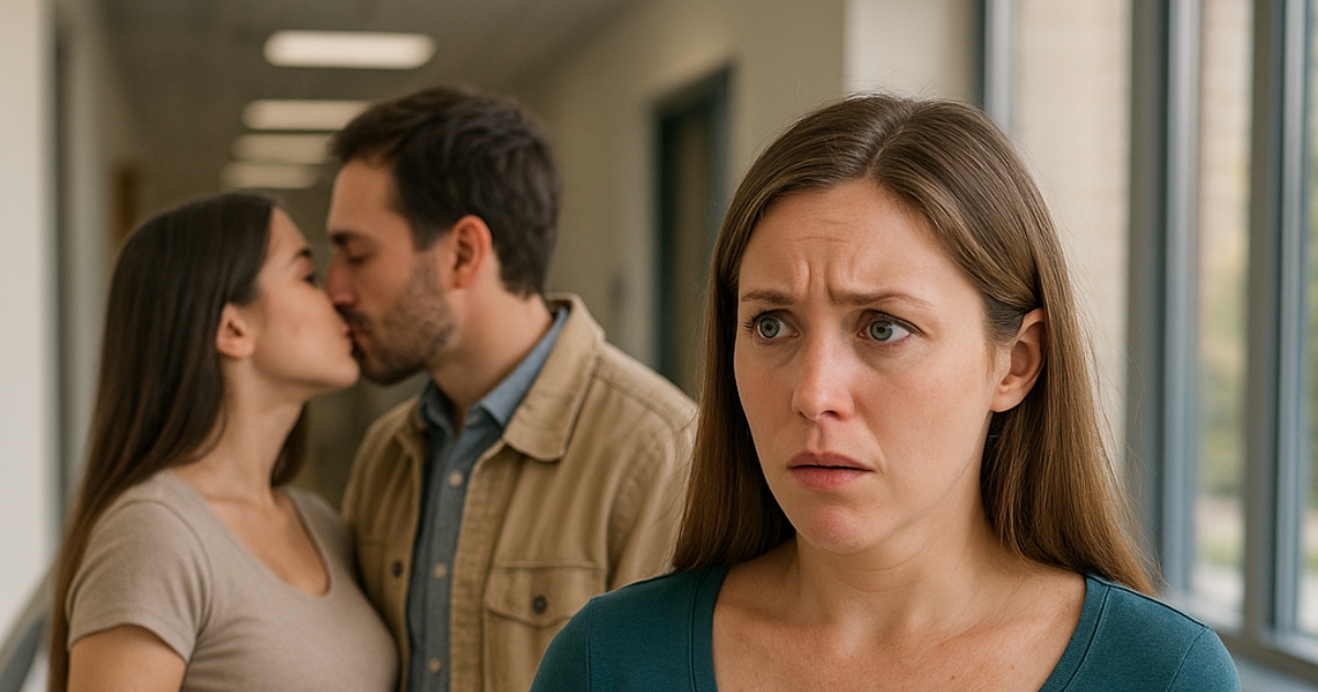 Ale nagle zamarłam. W korytarzu, zaledwie kilka kroków dalej, stał mój mąż – całujący inną kobietę. Kobietę w ciąży. Wyglądała na dużo młodszą ode mnie.