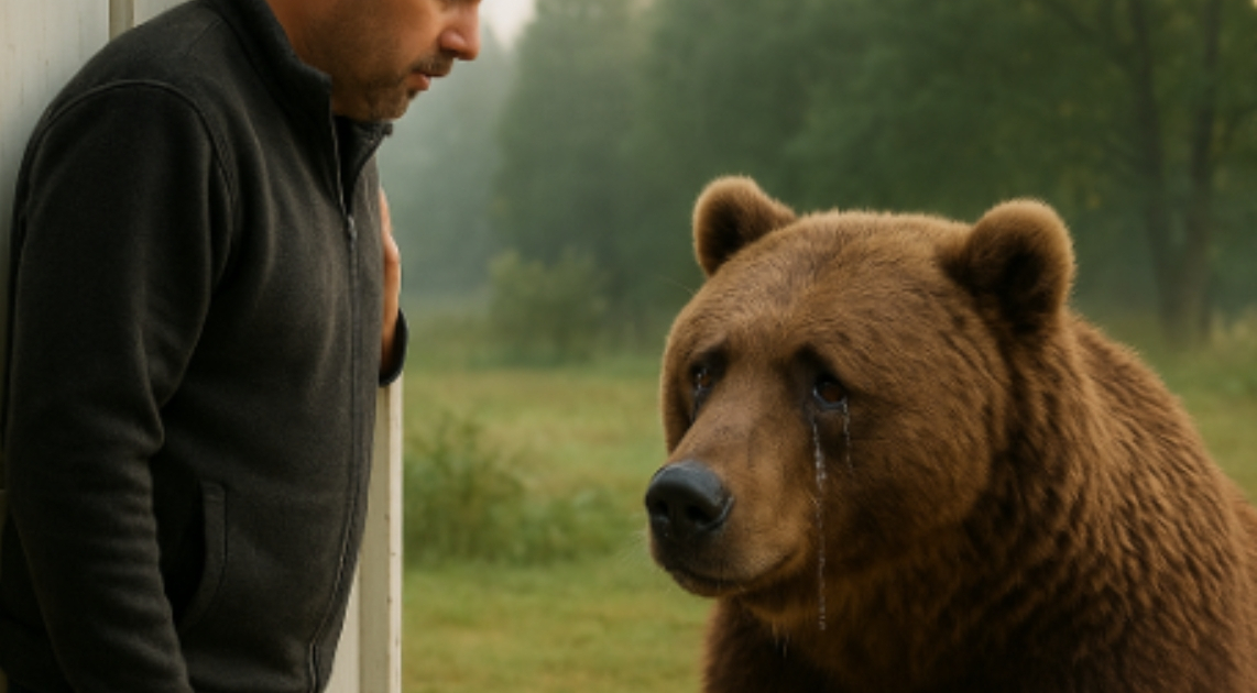 Było około szóstej rano. Otworzyłem drzwi, żeby wpuścić chłodne poranne powietrze i… zamarłem. Na skraju podwórka, tuż przy ganku, stała niedźwiedzica. Duża, wyczerpana, drżąca. Jej oddech był ciężki, a oczy wilgotne, jakby płakała. To nie był wzrok drapieżnika. To był wzrok matki, która nie miała dokąd iść.
