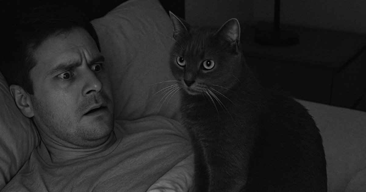 W środku nocy obudziłem się od ciężaru na klatce piersiowej. Kot siedział prosto na mnie, nieruchomo, wpatrując się w twarz. Jego spojrzenie było zbyt rozumne, niemal ludzkie. Poczułem niepokój.