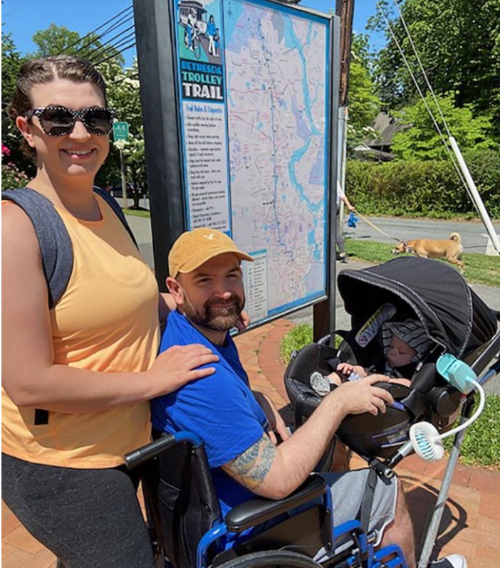 Trzy lata temu Jeremy King, 37-letni mieszkaniec Germantown w stanie Maryland, stanął przed nowym wyzwaniem w przygotowaniach do ojcostwa. Po operacji guza mózgu miał ograniczenia fizyczne wpływające na jego równowagę, co sprawiało, że noszenie dziecka było niebezpieczne. Gdy on i jego żona Chelsie, 32 lata, dowiedzieli się w czerwcu 2020 roku, że spodziewają się pierwszego dziecka, zorientowali się, że zasoby dla rodziców z niepełnosprawnością są bardzo ograniczone. Szukając rozwiązania, Chelsie, nauczycielka dramy w Bullis School, skontaktowała się ze swoim kolegą Mattem Ziglerem, który prowadził zajęcia „Making for Social Good” (Tworzenie dla Dobra Społecznego).