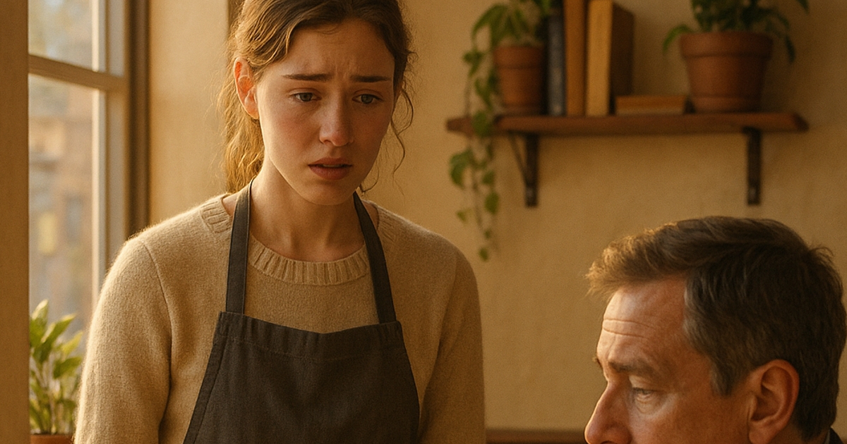 Claire przemykała między stolikami z tacą w rękach — zmęczona, lecz skupiona. Kochała te chwile, gdy miasto dopiero się budziło, a słońce przez witraże malowało ściany bursztynowym światłem.