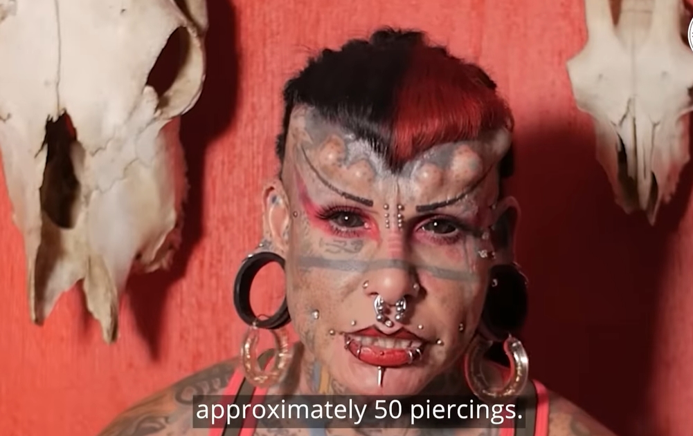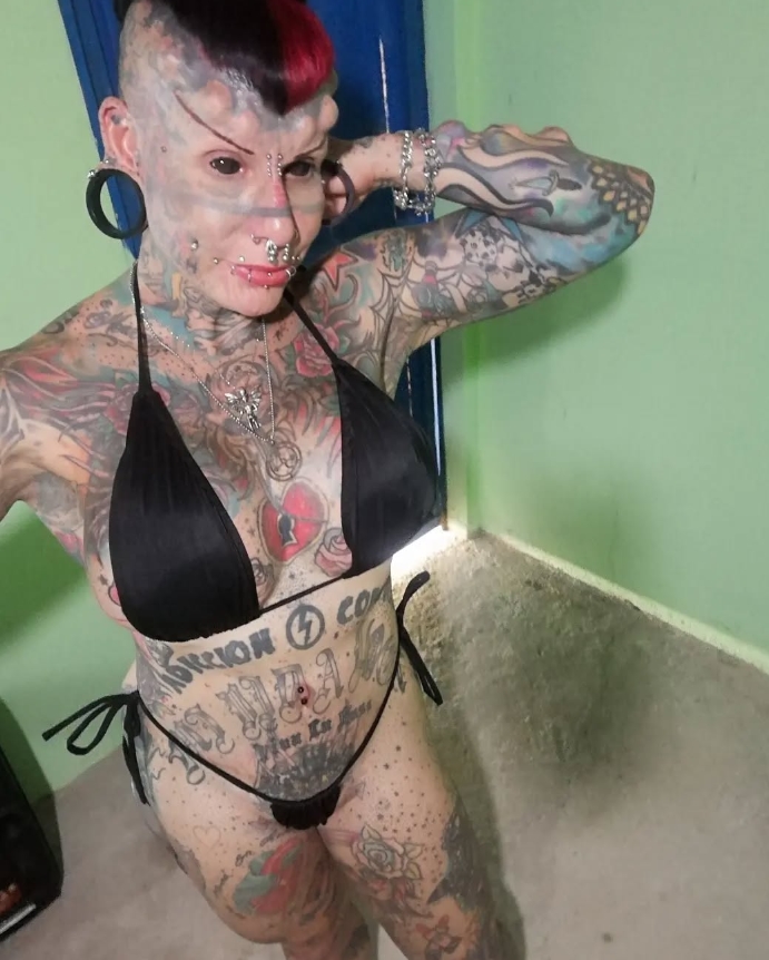 Jej przemiana rozpoczęła się już w wieku 14 lat — iskra, która zapoczątkowała wieloletnią podróż transformacji. Na przestrzeni dekad María zdobyła rekord Guinnessa, posiadając ponad 50 modyfikacji ciała — tatuaże, kolczyki, implanty podskórne i rozdwojony język. Każda oznaka na jej ciele opowiada historię: przetrwanego bólu, wyzwolenia po dziesięcioletnim toksycznym małżeństwie, kobiety, która odzyskuje życie na własnych warunkach.