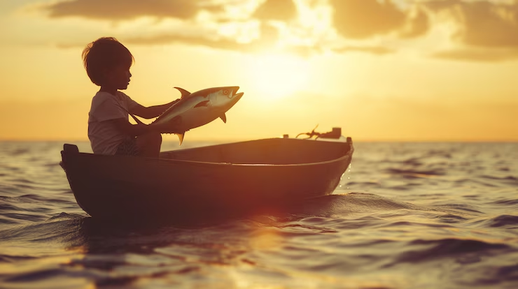 Najmłodszy syn, zachwycony meduzą unoszącą się tuż obok łodzi, pochylił się zbyt mocno, by jej dotknąć. W jednej chwili stracił równowagę i wpadł do wody.