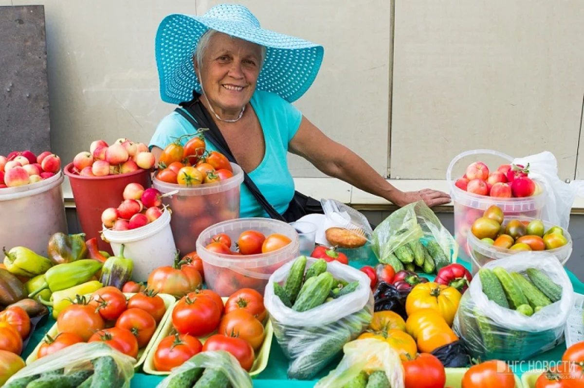 Kobieta, ubrana w wyświechtany sweter i wyblakłą spódnicę, miała starannie ułożone pomidory, marchewki i ogórki.