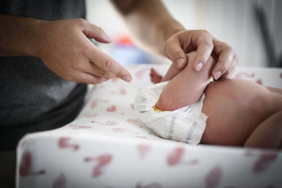 Rozłożyłam czystą pieluszkę, delikatnie położyłam maleństwo i odpięłam pieluszkę.
