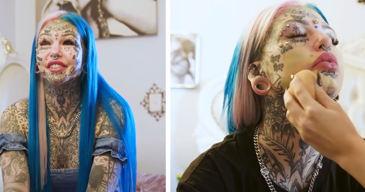 W ramach unikalnego eksperymentu Amber ukryła tatuaże na twarzy za pomocą podkładu i zmieniła swój charakterystyczny kolor oczu na soczewki kontaktowe.