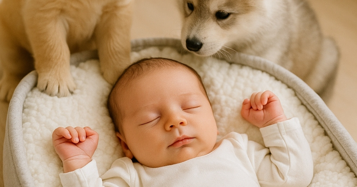 Tydzień później dom znów wypełnił się krzykiem — tym razem innym. Urodził się syn — maleństwo, jakby ulepione z mlecznego światła. Jego narodziny zbiegły się z utratą, a życie wydawało się okrutną ironią. Ale gdy położono dziecko obok kosza, w którym spały szczeniaki, stało się coś niezwykłego: zaczęły merdać ogonkami, poruszać się i pełznąć w jego stronę. Piszczały, ocierały pyszczkami o kocyk, jakby rozpoznawały brata. Chłopiec wyciągnął rękę i dotknął je. Od tej chwili stali się nierozłączni.