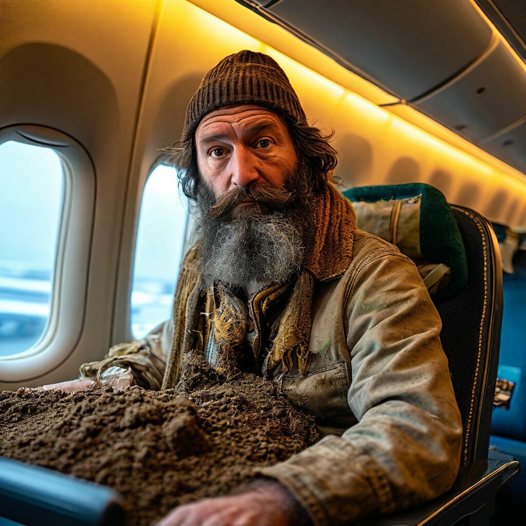 Starszy mężczyzna został odrzucony przy wejściu na pokład — a sekundę później wszyscy zamarli. Poranny lot był pełen pasażerów. W tłumie uwagę przykuł mężczyzna około pięćdziesiątki. Jego brudne ubrania, zużyty blezer i zmęczona twarz sprawiały, że inni postrzegali go jak włóczęgę.