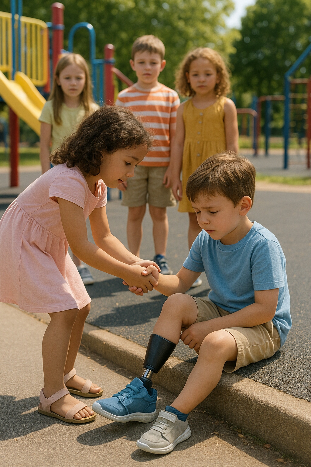 Ethan, dwunastoletni syn najbogatszego budowniczego w mieście, szedł z opuszczoną głową. Każde kliknięcie jego protezy bolało jak cios w serce. Ani drogi mundurek, ani sławne nazwisko nie mogły ukryć tego, co było oczywiste: był „inny”.