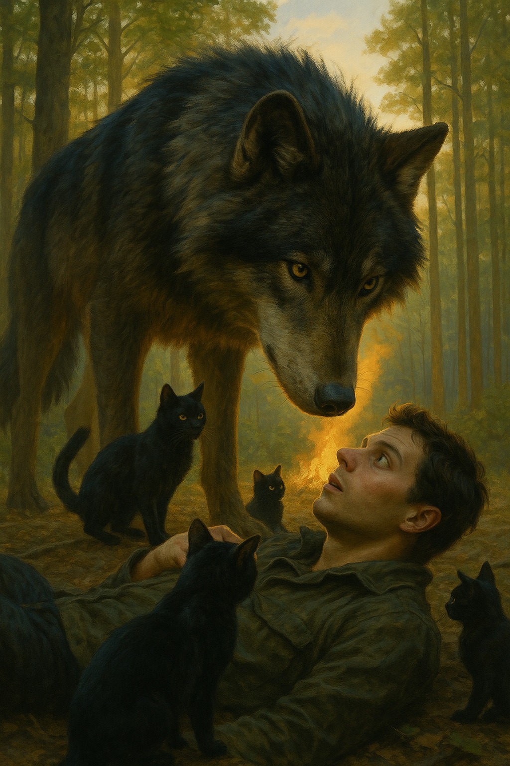 O świcie, gdy się obudził, pierwsze promienie słońca przesączyły się między gałęziami. Wilk zniknął. Początkowo myślał, że wszystko, co się wydarzyło w nocy, było snem lub halucynacją. Tylko ślady łap w wilgotnej ziemi i kilka ciemnych kępek futra przypominały mu, że wszystko było prawdziwe.