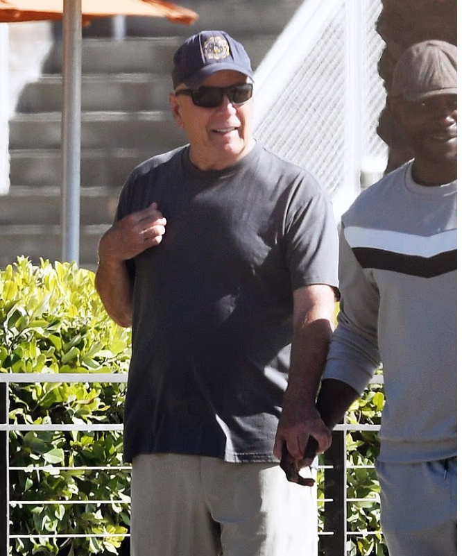 W wieku 70 lat Bruce Willis — niegdyś niezniszczalna twarz kina akcji — został w tym tygodniu sfotografowany podczas powolnego spaceru wzdłuż brzegu morza, trzymając delikatnie za rękę swojego asystenta. Obrazy, pełne czułości, a zarazem łamiące serce, pokazują aktora patrzącego wokół z wrażliwą miękkością, niemal dziecięcą ciekawością. Dla wielu fanów widok legendy Die Hard poruszającej się tak ostrożnie był bolesnym przypomnieniem postępującej demencji czołowo-skroniowej, z którą jego rodzina zmaga się coraz otwarciej — i coraz trudniej.