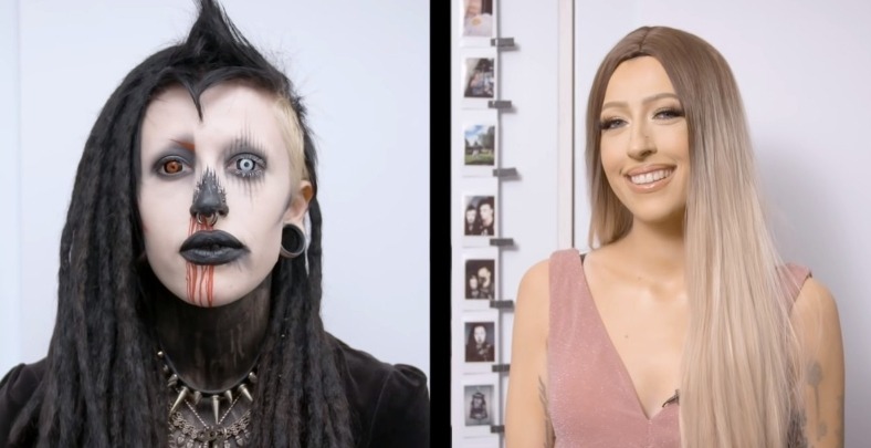 Transformacja rozpoczęła się od usunięcia każdego śladu charakterystycznego dla Erin gotyckiego makijażu. Od tego momentu metamorfoza była całkowita i skrupulatna. Sztuczna opalenizna zmieniła jej bladą cerę, mocne konturowanie nadało rysom twarzy nowy kształt, a idealnie wyregulowane brwi i spektakularne sztuczne rzęsy stworzyły dopracowany, pełen przepychu wygląd. Każdy krok oddalał ją od mrocznej estetyki, którą doskonaliła przez lata.