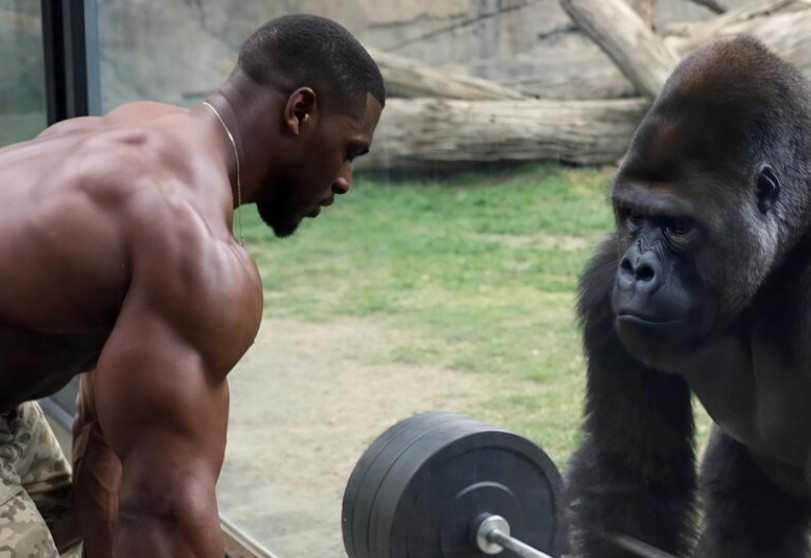 Pewien silny sportowiec postanowił nagrać efektowne wideo i zdobyć wyświetlenia, wyzywając… goryla na „zawody”. Chciał pokazać, że podnosi ciężki sztangę i oczekiwał, że zwierzę zrobi to samo.
