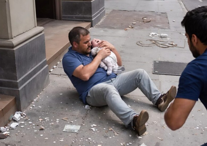To był zwykły poranek, a ja spieszyłem się do pracy. Nagle usłyszałem odgłos tłuczonego szkła z góry i zamarłem. Gdy spojrzałem w górę, zobaczyłem, jak z okna na piątym piętrze spada niemowlę. Bez wahania rzuciłem się do przodu, wyciągnąłem ręce i złapałem dziecko w locie. Upadliśmy na asfalt z impetem; poczułem nie do zniesienia ból w plecach i głowie, ale dziecko płakało – żyło. Ludzie wokół natychmiast podbiegli z pomocą, a wszyscy okrzyknęli mnie „bohaterem”.