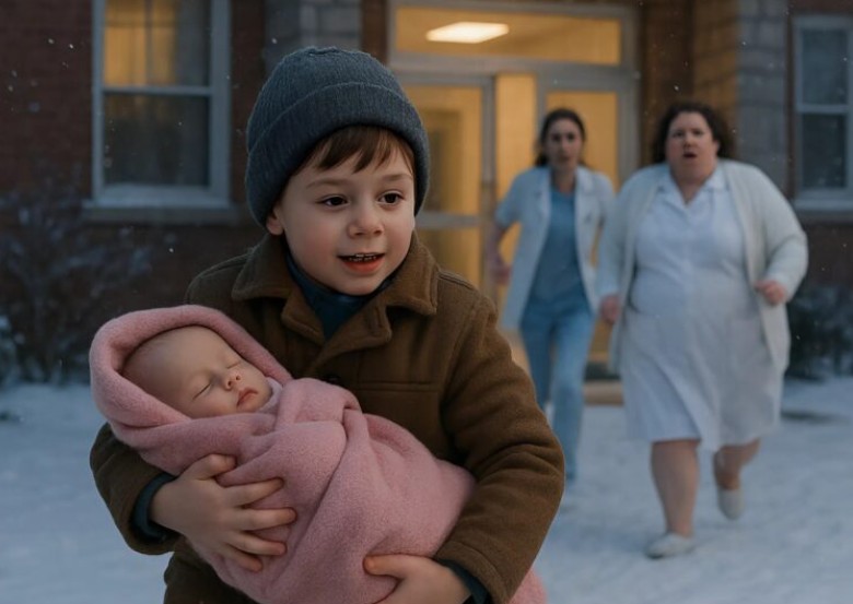 Korytarze sali porodowej tamtego poranka wypełniała spokojna cisza; świeżo upieczona mama odpoczywała w pokoju, a tata przy wejściu zajmował się dokumentami razem z pielęgniarkami. Jednodniowa córeczka spała słodko, owinięta w różowy kocyk. W tym czasie sześciolatek, jej starszy brat, cicho wślizgnął się do pokoju razem z rodziną. Upewniwszy się, że nikt nie patrzy, wziął dziecko na ręce i, podtrzymując główkę tak, jak nauczyła go mama, szybko ruszył w stronę wyjścia.