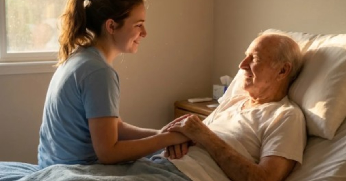 Siedemdziesięcioletni mężczyzna, po udarze wymagający całodobowej opieki, został powierzony młodej, dwudziestopięcioletniej, cichej i skromnej opiekunce, którą zatrudniła jego córka. Przez sześć miesięcy młoda kobieta oddanie troszczyła się o starszego pana – podawała mu leki na czas, opowiadała historie ze swojej rodzinnej miejscowości, by podnosić jego na duchu. Zdrowie mężczyzny wyraźnie się poprawiało, a w domu wszystko wydawało się w porządku.