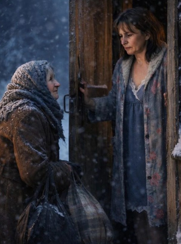 Po śmierci męża zostałam sama z czwórką dzieci. Utrzymywaliśmy się z warzyw z ogrodu, ale tamtego grudniowego dnia przenikliwy mróz przycisnął nas do muru. Drewno opałowe prawie się skończyło, a w lodówce dla dzieci została tylko jedna sucha kromka chleba. Około drugiej w nocy, w huku wichury, usłyszałam słabe pukanie do drzwi. Zerkając przez okno, zobaczyłam w zamieci sylwetkę wyczerpanej, starszej kobiety.