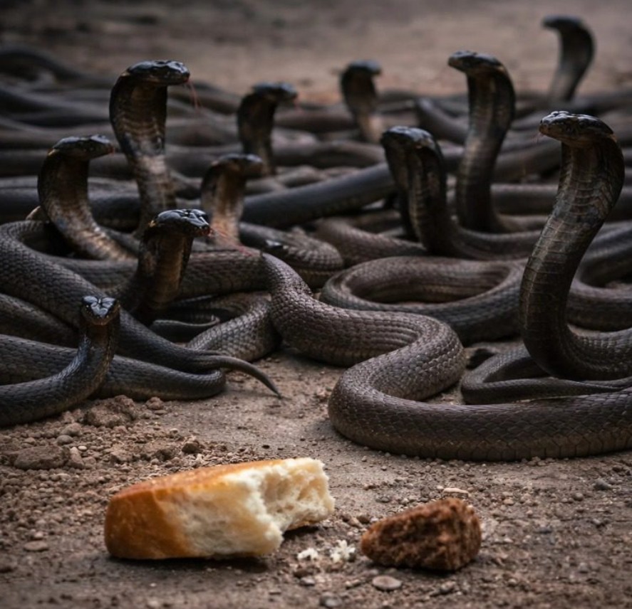 Z upływem dni węże rosły szybko i ich liczba zaczęła się zwiększać. Z początkowych dwóch osobników w krótkim czasie zrobiło się ich kilkadziesiąt, zbierających się wokół jego namiotu w porze karmienia. Żołnierz zdał sobie sprawę, że sytuacja wymknęła się spod kontroli i jeśli jego „zwierzątka domowe” zostaną zauważone przez przełożonych, czekałaby go surowa kara. Ogarnęła go przerażająca myśl, więc tamtej nocy postanowił na zawsze pozbyć się węży. Przygotował się i, nie dając się nikomu zauważyć, udał się w odludne miejsce, gdzie mógł je bezpiecznie uwolnić.