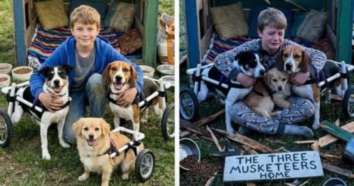Mój dwunastoletni syn Ethan ma rzadki dar dostrzegania wartości w rzeczach, które świat uznał za bezużyteczne i odrzucił. Kiedy odkryliśmy trzy psy porzucone przy spokojnej drodze, z porażonymi tylnymi łapami po potrąceniu i ucieczce sprawcy, Ethan odmówił odejścia, jakby nic się nie stało. Mimo naszych skromnych środków zawieźliśmy je do weterynarza, który potwierdził, że nigdy już nie będą chodzić. Ja widziałam w tym tragedię, ale Ethan dostrzegł zagadkę do rozwiązania — spojrzał na mnie z sercem pełnym dobra i obiecał, że ma pomysł, jak naprawić ich złamane życia.