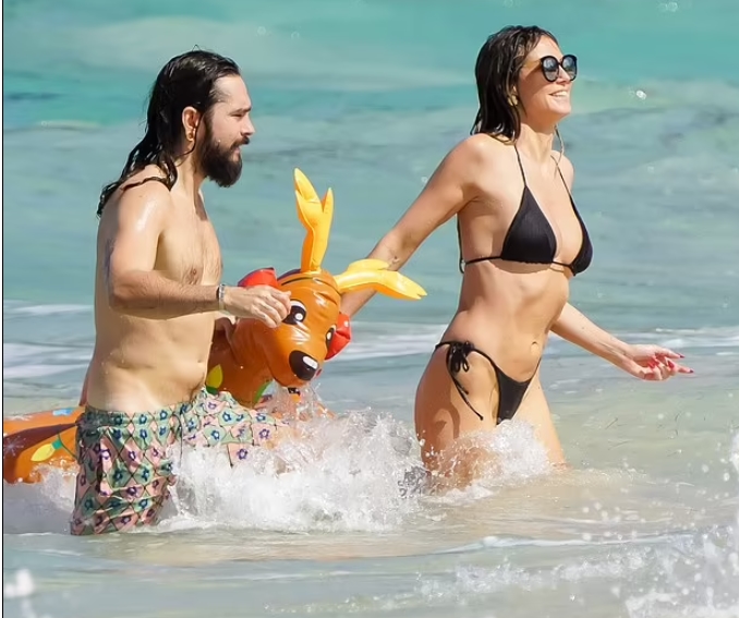 Strukturalna mechanika ich popołudnia przybrała oszałamiający i komiczny obrót, gdy zaangażowali się w moment „teatralnej doskonałości” z udziałem świątecznego, dmuchanego renifera. W tej pełnej uroku i zabawy scenie Heidi zanosiła się od śmiechu, uświadamiając sobie, że Tom żartobliwie kotwiczy zabawkę w miejscu, uniemożliwiając jej płynięcie naprzód przez ciepłe fale. Ta żywa, radosna interakcja ukazuje wiecznie ciekawego ducha, który nie daje się przytłumić spojrzeniom opinii publicznej. Potrzeba wyrafinowanego poczucia własnej wartości, by zamienić lśniącą fasadę gwiazdorstwa na tak nieskrępowaną radość, co dowodzi, że ich najtrwalszym występem jest ten, w którym po prostu pozwalają sobie być sobą.