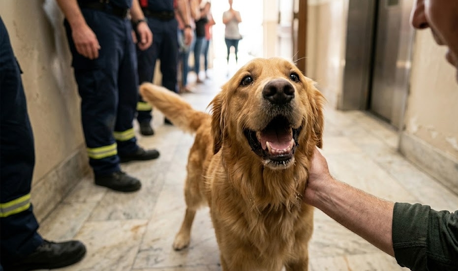 Kilka minut później strażacy otworzyli drzwi, znajdując Briana siedzącego na podłodze — spoconego, roztrzęsionego, ale uśmiechniętego od ucha do ucha. Wyszedł na korytarz i pobiegł schodami do holu, gdzie zebrał się niewielki tłum wokół zdezorientowanego, merdającego ogonem retrievera. Pies rzucił się na niego w chwili, gdy tylko się pojawił, oblewając jego twarz lawiną radosnych liźnięć, jakby chciał wyrównać chaos ostatnich minut. Brian objął go mocno, wdychając zapach sierści i świeżego powietrza, wiedząc, że tym razem to nie maszyna wygrała — lecz ten słabszy.