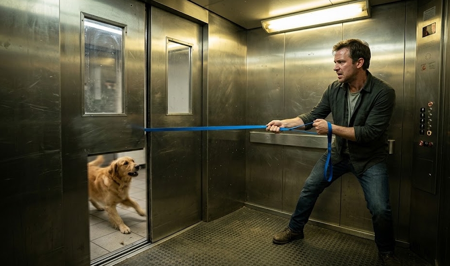 Kabina windy jęknęła, wydając metaliczny protest, który odbił się echem w wąskim szybie, gdy drzwi zatrzasnęły się na przypadkowo wciągniętym pasku z nylonu. W środku świat zamienił się w rozmazaną mieszaninę migoczących świetlówek i nagłych, gwałtownych szarpnięć. Brian zamierzał jedynie zjechać po pocztę, lecz widok smyczy znikającej w szczelinie zmienił zwykłą środę w koszmar. Przez małe okienko w drzwiach dostrzegł sylwetkę spanikowanego golden retrievera, którego łapy ślizgały się po podłodze holu, gdy winda zaczęła się wznosić. Szczekanie psa było ostre i pełne strachu, przytłumione przez stal, a jednak drżące aż w butach Briana.