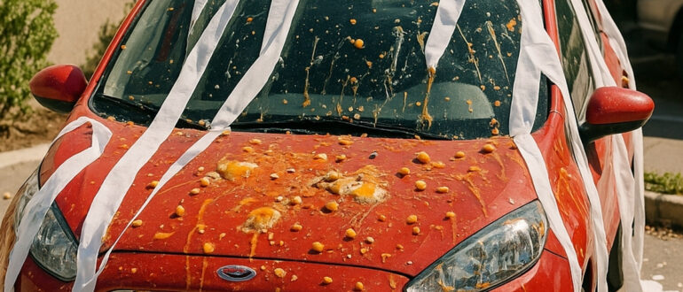 Poranek przed Halloween.Emily otworzyła drzwi i zamarła. Jej samochód był cały oblepiony surowymi jajkami i owinięty papierem toaletowym. — Mamo… — wyszeptał jej trzyletni synek, wskazując palcem —