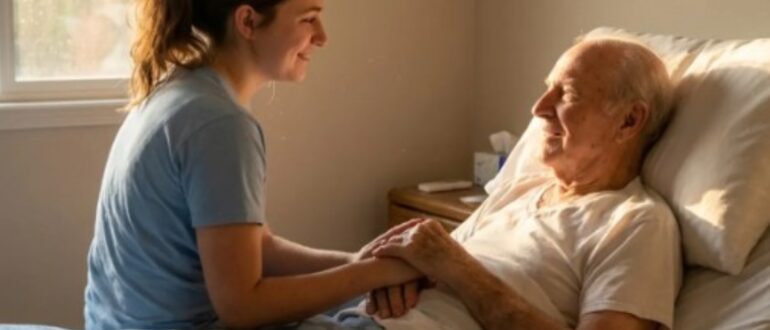 Siedemdziesięcioletni mężczyzna, po udarze wymagający całodobowej opieki, został powierzony młodej, dwudziestopięcioletniej, cichej i skromnej opiekunce, którą zatrudniła jego córka. Przez sześć miesięcy młoda kobieta oddanie troszczyła się o